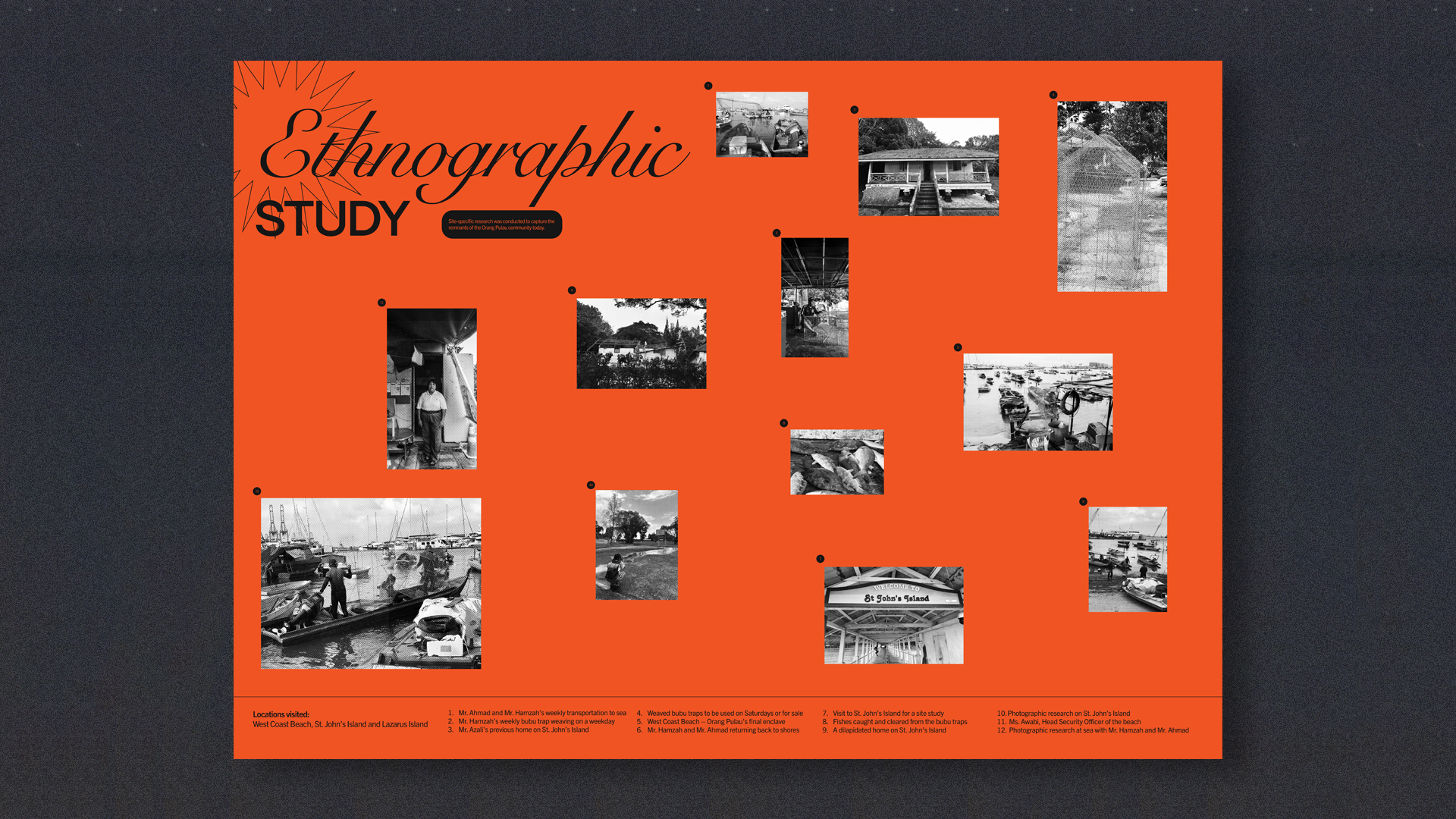 Siapa Aku (Who Am I)? digs deep into the hidden stories of Singapore’s former southern islanders (Orang Pulau). The graduation project puts a spotlight on the Orang Pulau’s way of life, all while attempting to preserve its diminishing intangible cultural heritage. Siapa Aku (Who Am I)? was considerably designed with the intent to shed light onto the islanders’ humble and rustic way of life that were tightly tied to their maritime environment. These lesser-known personal anecdotes are revolved around their livelihoods before the resettlement of the Orang Pulau on the mainland. The project takes on various mediums to sensitively and appropriately showcase the displacement of the Orang Pulau.