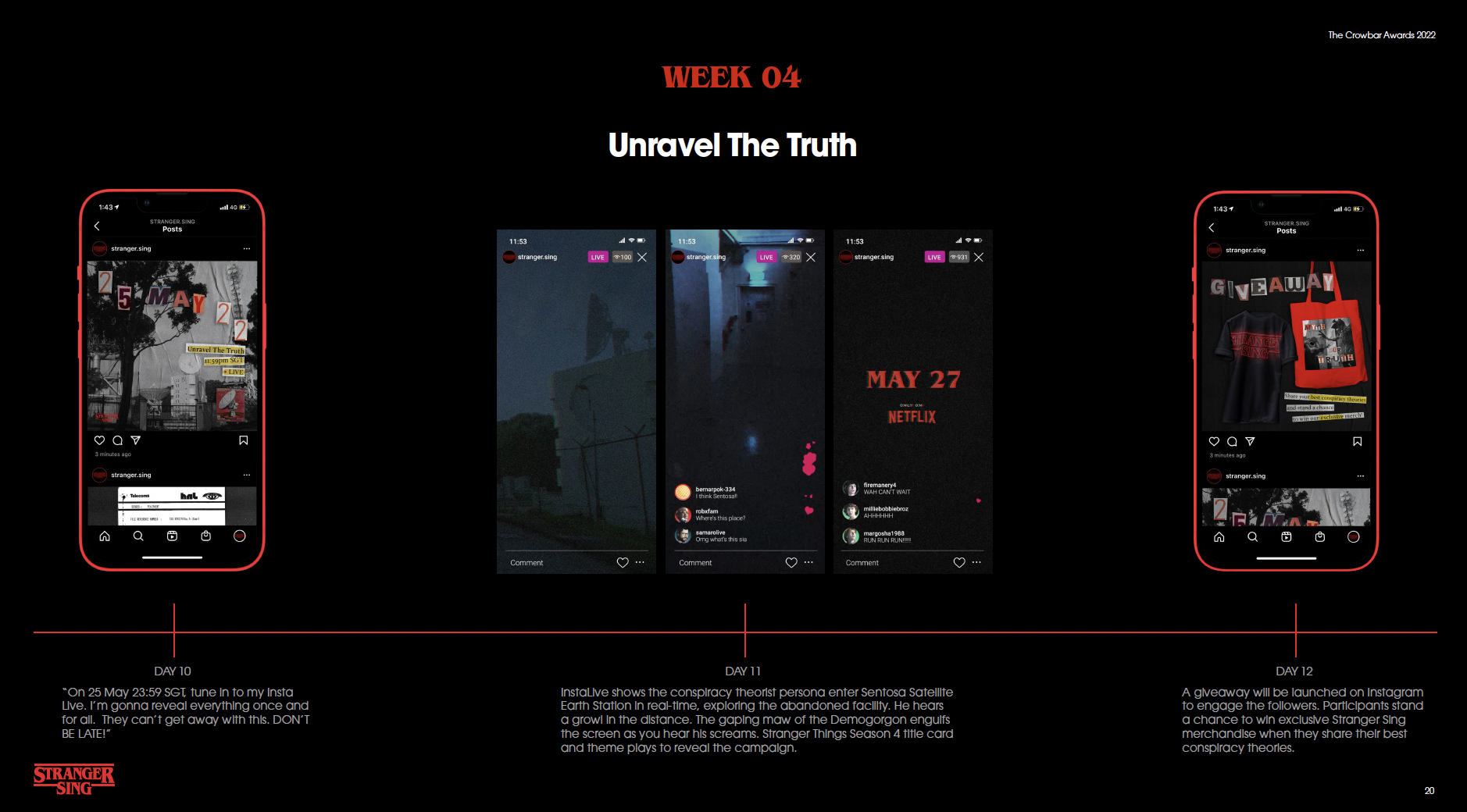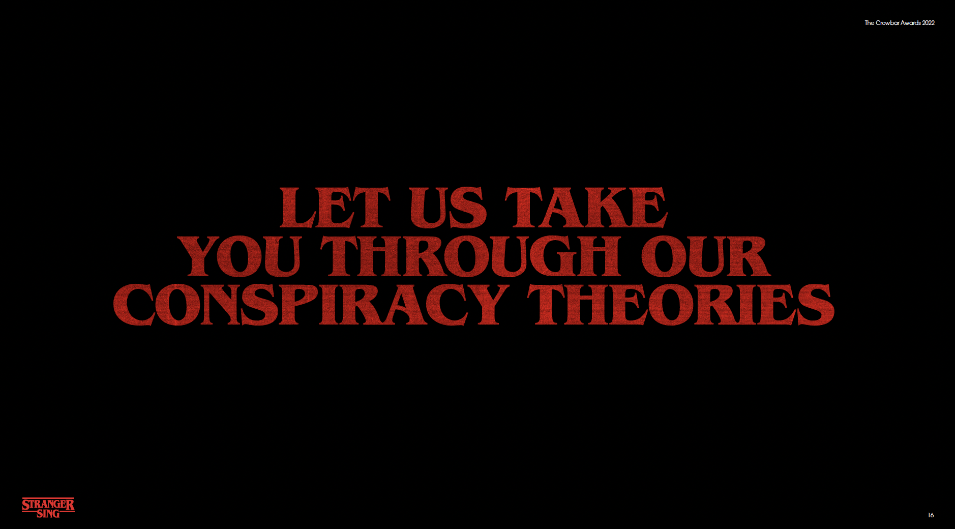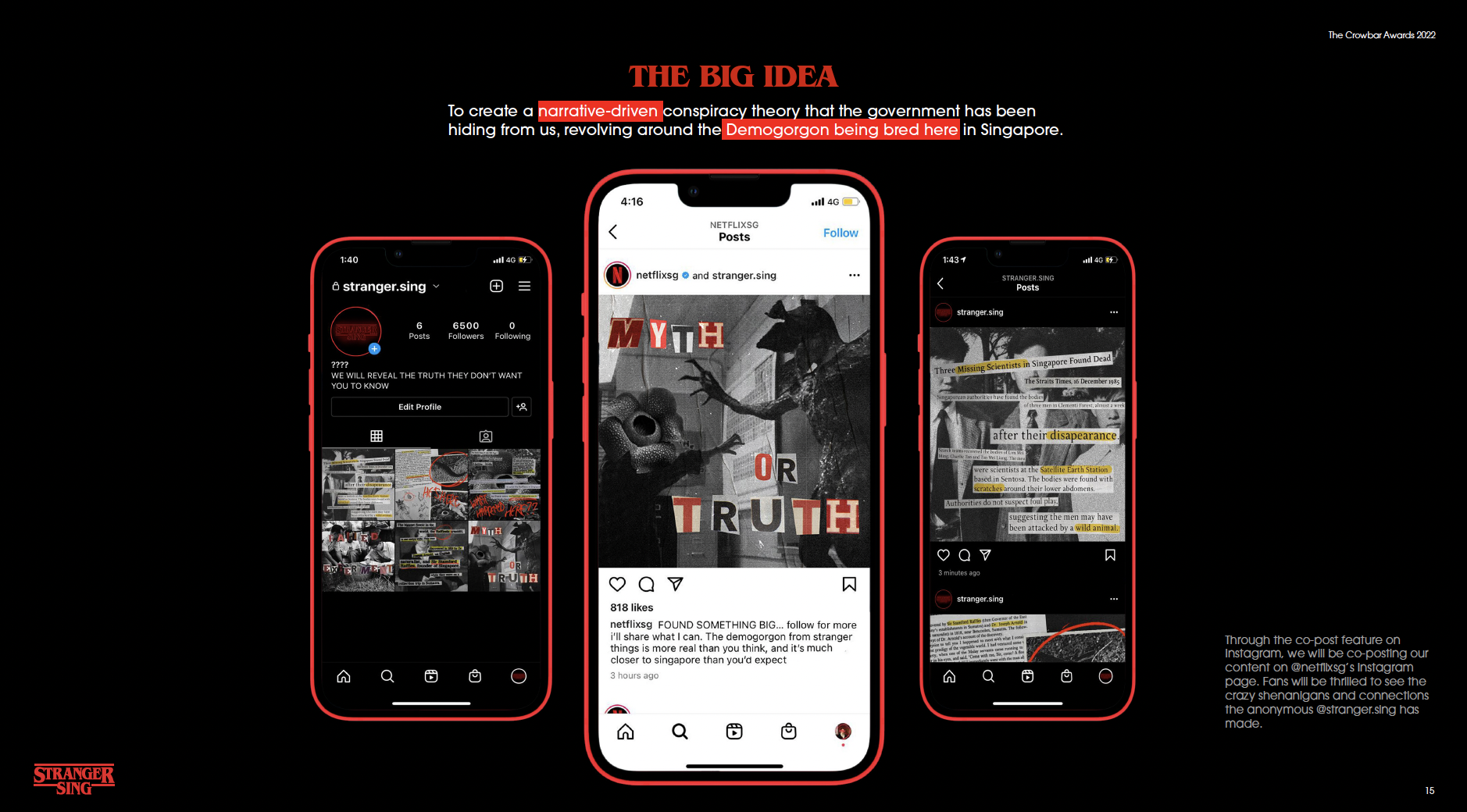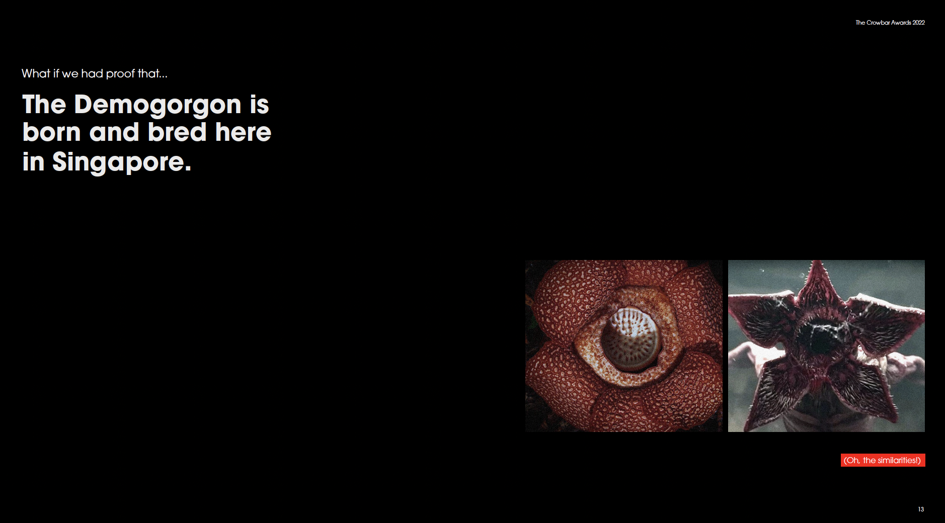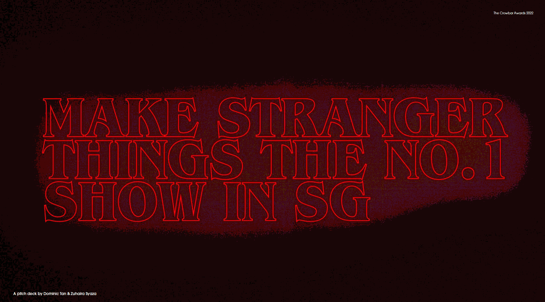 As part of a brief initiated by Forsman & Bodenfors, we were tasked to make a Netflix show the number one show in Singapore. My team partner and I had chosen Stranger Things as Netflix was launching the new season in 2022 - and we’re big fans of the show. The hypothetical deck was pitched to the team of Forsman & Bodenfors (who were great mentors throughout the duration of this advertising workshop) and Netflix. The activation campaign was then sent out to The Crowbar Awards 2022 and won the Bronze award.